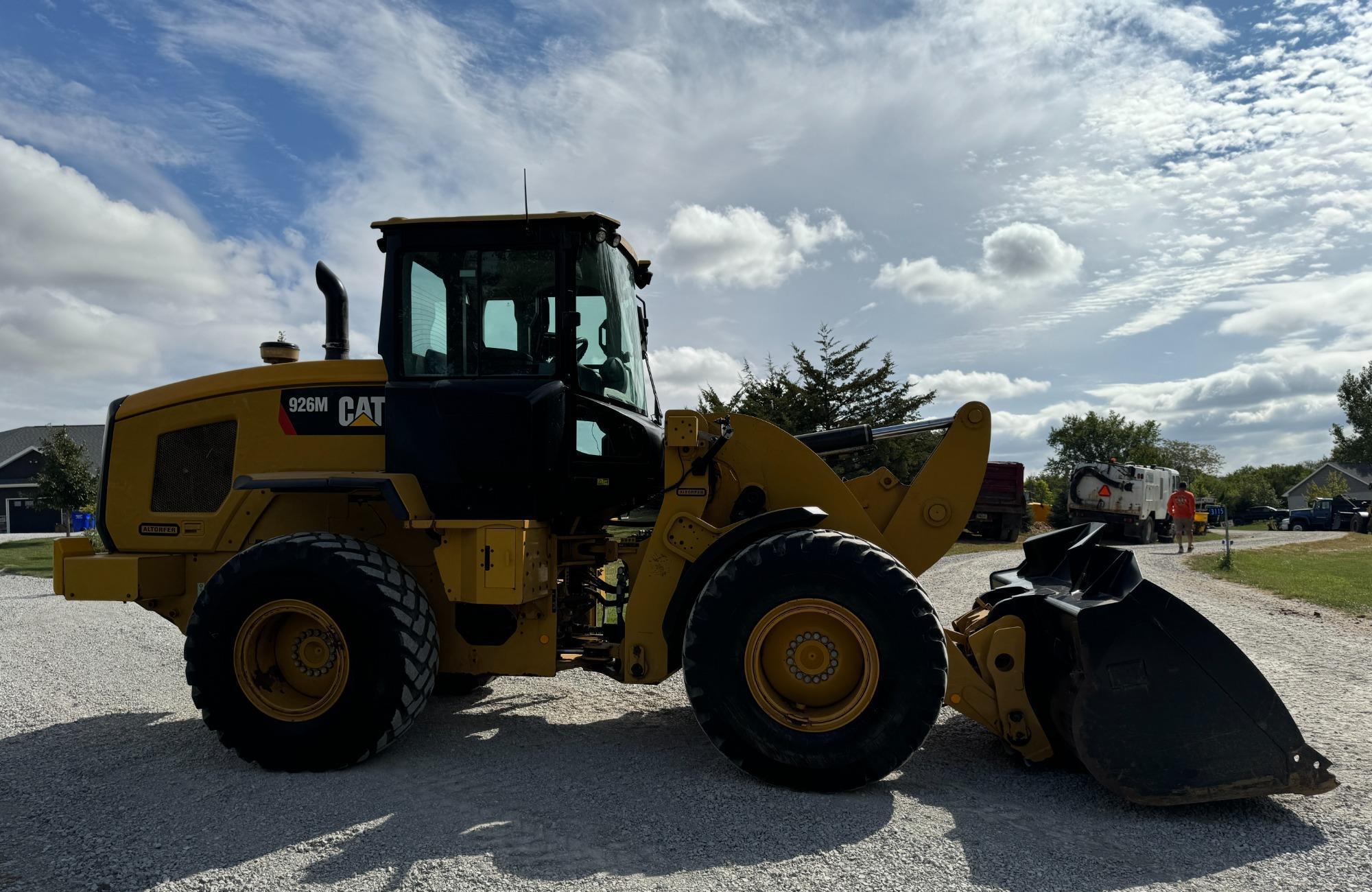 2015 Caterpillar 926M Wheel Loader, 978 Hrs Showing, CAT C7.1L ACERT Diesel Engine, 6-speed Powershift Transmission, 4WD, Hyd Coupler, QC Bucket, Enclosed Cab, Air Ride Seat, Full Fenders, Titan 20.5R25 Tires